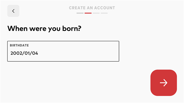 3、接着玩家们需要输入自己的出生日期,填写完成后点击下方箭头进行下一步。