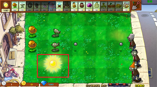 4、玩家们需要收集场景内掉落的阳光,以此来购买种植植物。
