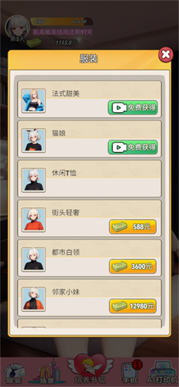 2.你可以消耗自己的资金来购买各种精美的服饰,并为角色进行更换。