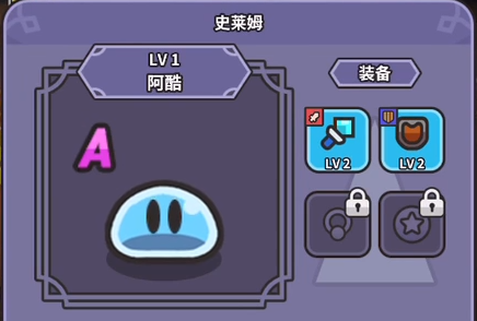 1、玩家们首先可以使用游戏的新手史莱姆【阿酷】,然后将武器以及防具升级到蓝色。
