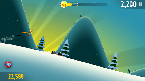 2、进入到场景内后,玩家们将控制着角色进行滑雪冒险,点击屏幕即可控制角色跳跃。