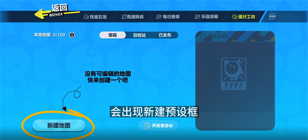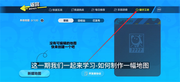 2、然后在蛋仔工坊的界面当中点击左下角的新建地图按钮。