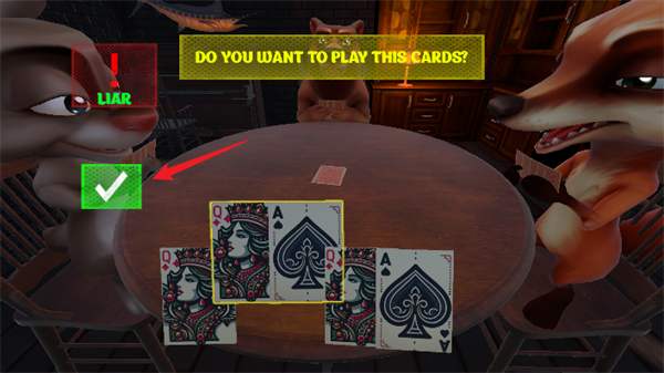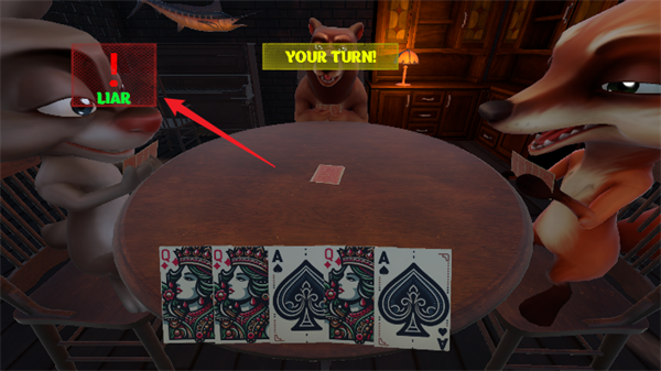 Liar's Bar是一款充满了趣味性和挑战性的非常刺激好玩的休闲策略卡牌类手机游戏,这款游戏中采用了极具特色的俄罗斯轮盘赌玩法模式,对局中将有4名玩家在同一张圆桌上进行对局,每一名玩家们将会获得5张手牌,需要按着顺序轮流的打出卡牌,而打出的卡牌必须让其他的玩家们觉得是与系统给出的主牌是一样的,玩家们可以对你打出的卡牌进行质疑,被发现卡牌与主牌不一样后则需要进行轮盘赌,反之则需要对你发起质疑的玩家进行轮盘赌,被子弹击中则为游戏失败,非常考验玩家们的心理博弈能力,感兴趣的小伙伴们快来一起下载游玩体验一下吧!