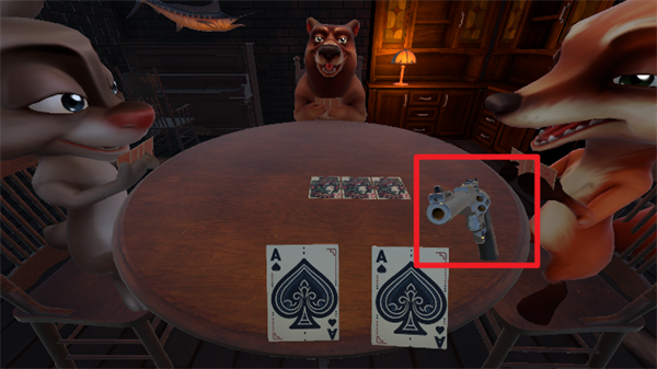 4、当我们打出欺骗牌被质疑成功后就需要进行俄罗斯轮盘赌,我们对其他的玩家发起质疑失败后也需要进行轮盘赌。