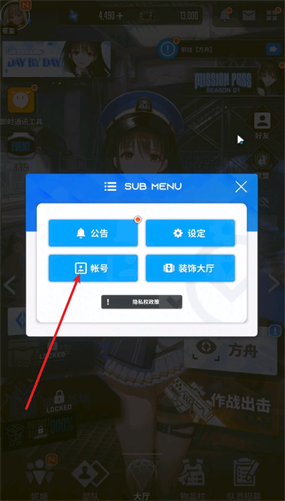 2、在菜单界面选择【账号】的选项,进入到个人的账号详细界面之中。
