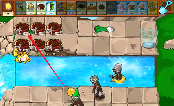 1、玩家先在场景当中种植一个促销花盆。