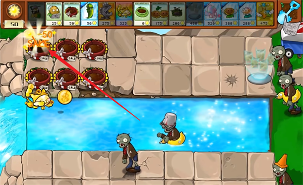 4、最后可以看到植物卡槽上指定植物的消耗减少了50