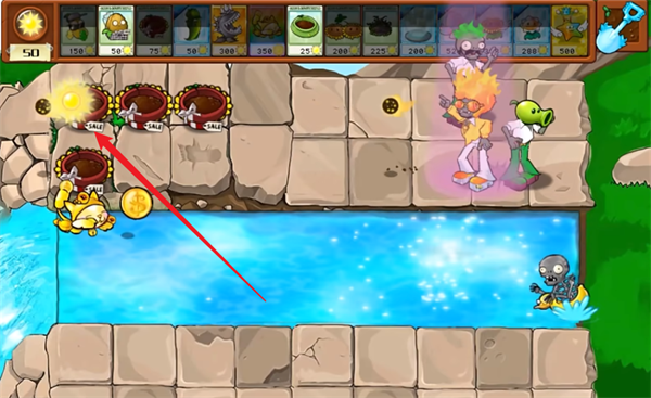 2、每隔一定的时间就会产出阳光,当消耗为0的时候所产出的阳光会变得更大。