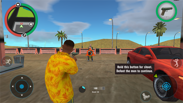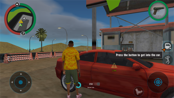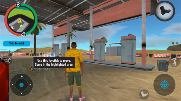 1、玩家们进入游戏之后,将会作为一名黑帮成员开始进行行动。移动左下角的轮盘就能够控制自己的角色进行移动。