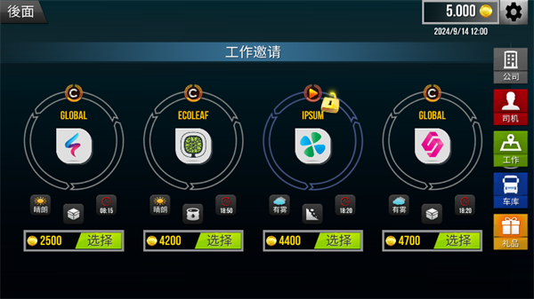 4、选择巴士完成后玩家们就可以接受工作邀请进行挑战了,点击即可进入挑战。