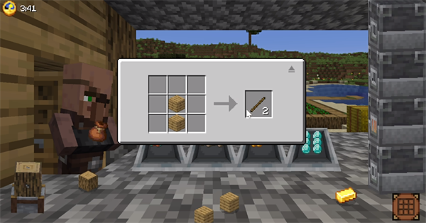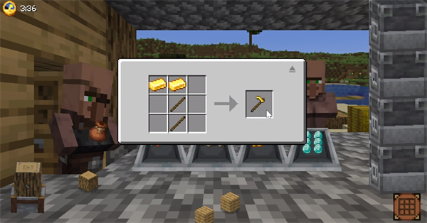 7、通过将反应出来的金块以及木棍按照指定的方式进行排列,你将能够合成出一个黄金镰刀。