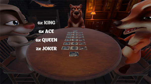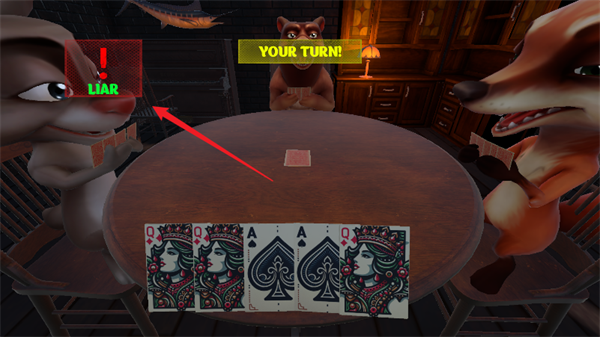 2、游玩的过程中玩家们需要出牌进行撒谎或者别人出牌进行质疑,以此来获得对局的胜利。