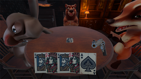 3、爱好者们可以对其他玩家所出的牌进行质疑,成功即可使对方进行俄罗斯轮盘赌。