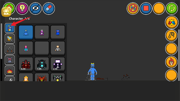 3、进入到场景内后玩家们点击左侧的头像图标在界面中即可添加角色人物。