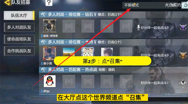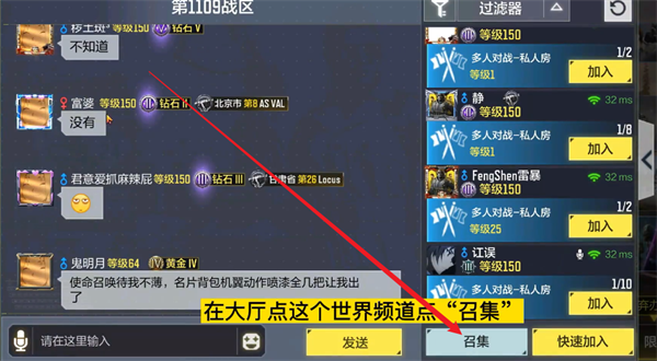 2、在大厅界面的右下角点击【召集】。