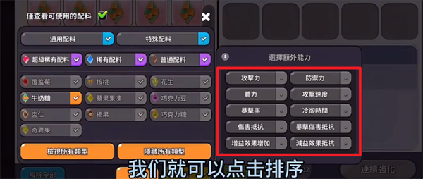 5、将拥有指定额外能力的配料选中,并将其升到十二级。