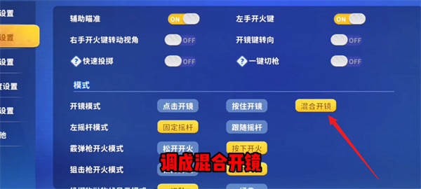 1、玩家们首先需要将自己的开镜模式更改为混合开镜模式。
