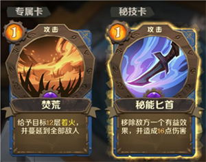 秘技卡“秘能匕首”能移除敌人的增益效果并造成伤害,是一张灵活的攻击牌。