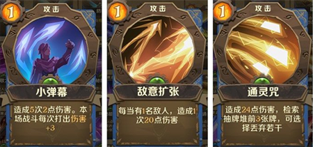 同时“小弹幕”、“敌意扩张”和“通灵咒”,都是非常优质的低品质攻击牌,获取难度较低,可以用来替换掉初始攻击,提升伤害upup。