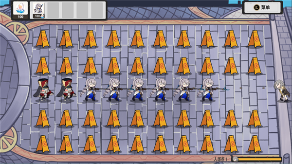 1.主要的玩法就是在场景之中放置角色,并由此对抗垃圾桶军团,保卫贝洛伯格城的安全。