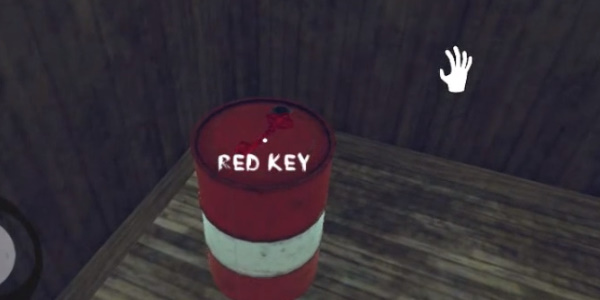 9.返回楼梯往上走,进入房间在红色的桶上方,拿走钥匙。