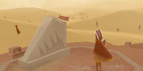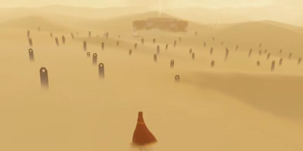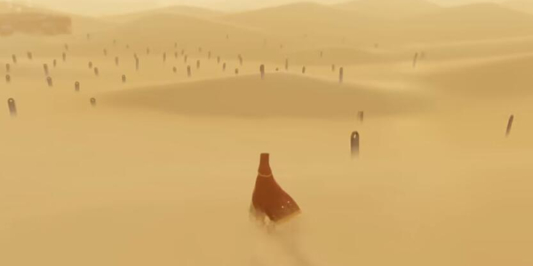 2.在一望无际的沙漠,玩家扮演一位旅人,向前行走,周围都是矗立的石碑。