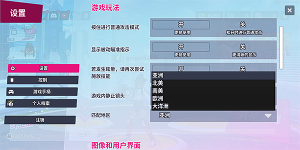 2、点击地区后再选项中选择需要换服的地区后即可。