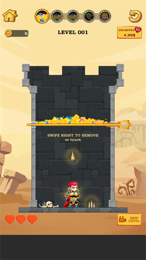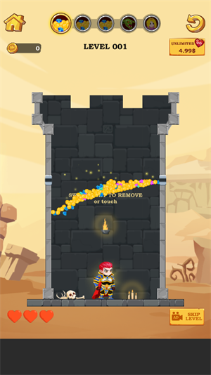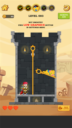 2、英雄每一个关卡都被困住,我们要想尽一切的办法去帮助英雄跑出来才能通关。