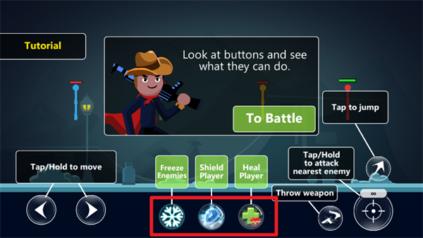 4、点击屏幕下方中间的按键可以释放技能和为角色进行治疗。