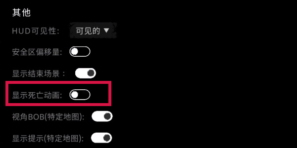 5.在上方【一般】中往下滑,如果不想看到死亡动画,可以将【显示死亡动画】关闭。