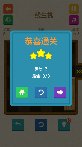2、在游戏里面玩家要用最少的次数步数去解开,并且从出口中滑动逃出这个复杂的关卡。