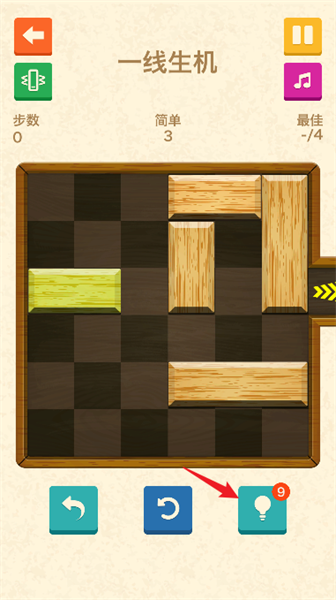5、当我们在关卡中不知道该怎么办时,可以点击右下角的灯泡图标获取提升。