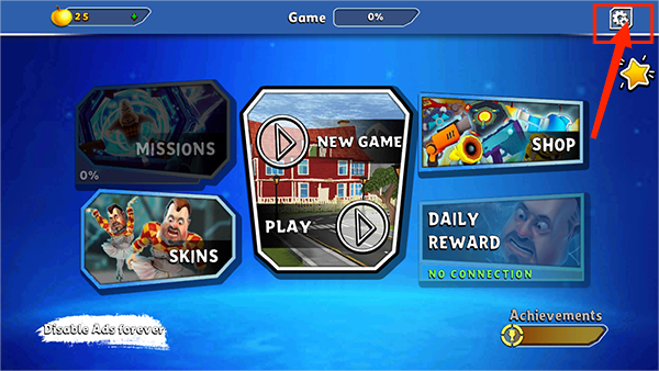 1、首先进入到游戏主页后,点击右上角的齿轮设置图标进入设置界面。