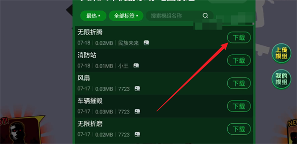 2、在悬浮窗菜单之中,你将能够下载各种不同类型的模组地图。
