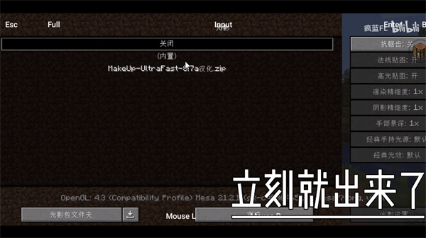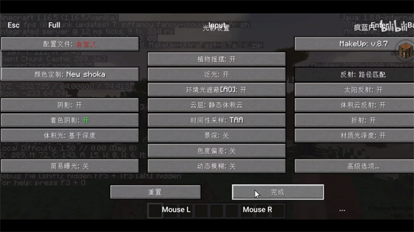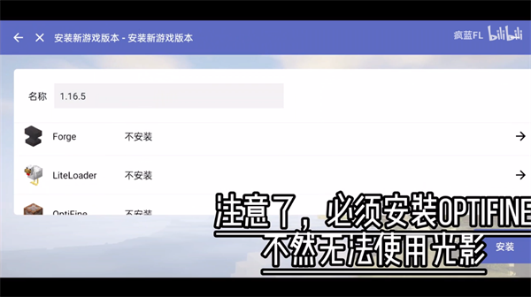 注意玩家们必须安装optiline,不让无法使用光影。