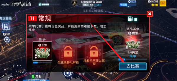 3、在关卡的详情界面还会显示具体的信息以及奖励,点击去比赛就能够开始进行比赛。