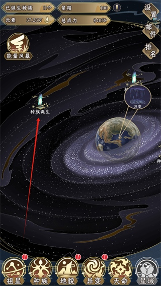 4、打开异变系统之后,通过对祖星当中的异变进行升级,从而提高种族的上限。