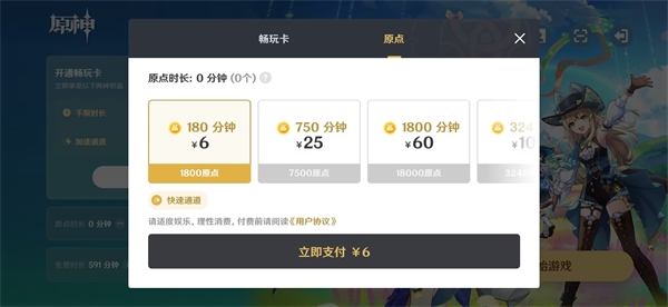 2、在这里你将能够对自己的账户进行原点的充值,其中会存在着各种不同的挡位供你进行选择。