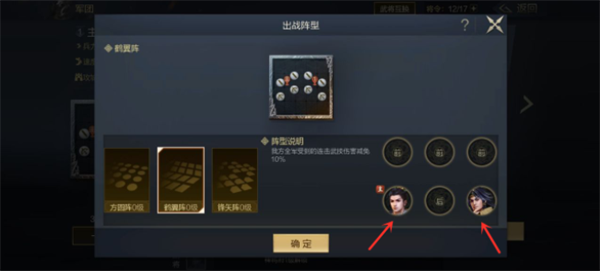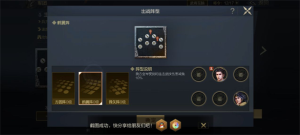 该阵型有我方全军受到的连击武将技伤害减免%10的效果,可以有效减少敌方强力输出武将的连续攻击。并且鹤翼阵的两侧更加靠后,站位上可以减少敌方主将AOE伤害。