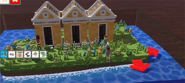 2、最开始你会拥有一个小小的地块,使用自己手中的材料来将其逐渐的进行构建。