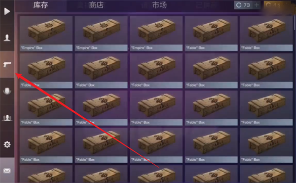 1、玩家们进入游戏之后,首先需要点击左侧的枪械图标。