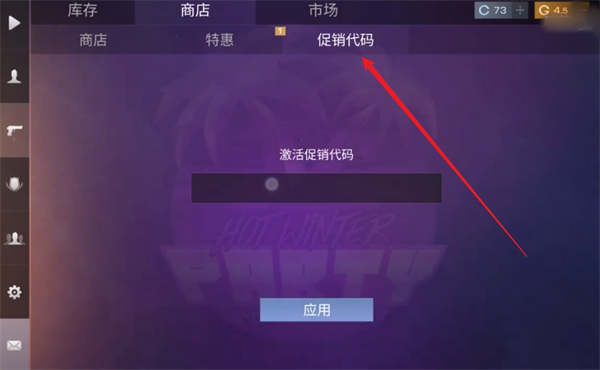 4、在输入框之中输入自己获得的促销代码,并点击下方的应用。