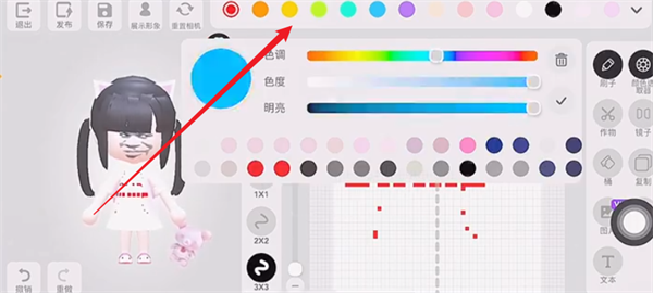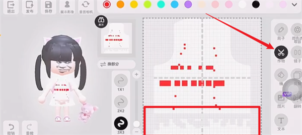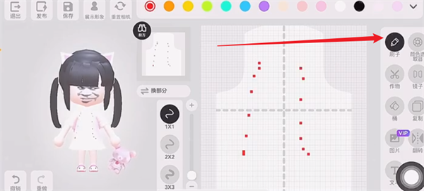 5、点击右边的【刷子】功能,能够对自己衣服上的图案进行绘制,左侧会存在刷子粗细的选择。