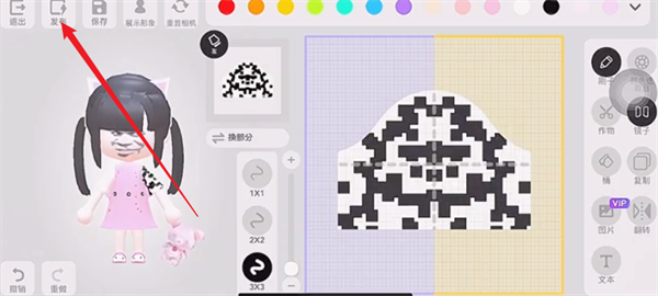 13、如果对自己的衣服射设计完毕之后,就能够点击左上角的【发布】进行保存。