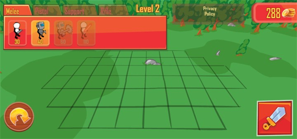 1、初始部署进入游戏后,首先安排可用的小兵进行战斗。初始阶段只有前两个兵种可用,其他兵种需要随着游戏进程逐步解锁。