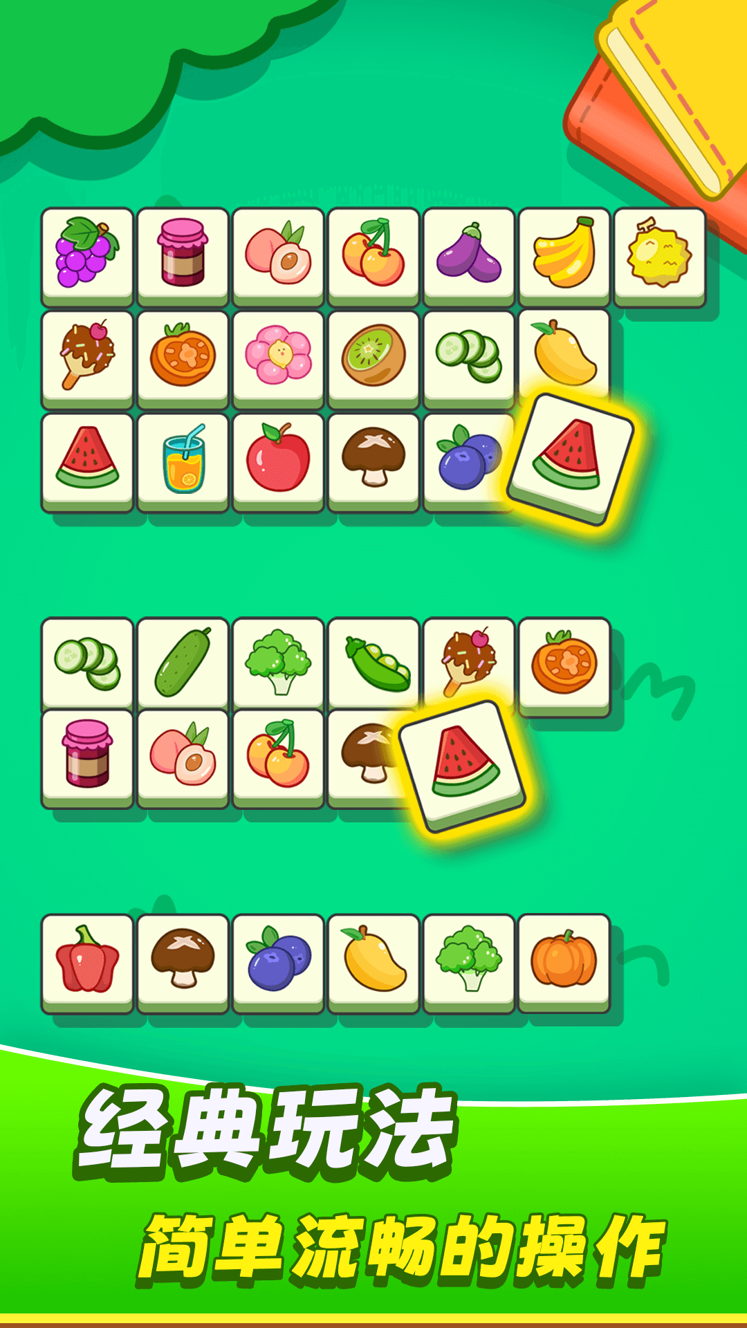 启动游戏后,将看到不同颜色和形状的水果图案,选择相同的水果进行连接,确保连接线不超过两条直角,完成消除。每次消除后,屏幕上会出现新的水果,保持游戏的流畅性。