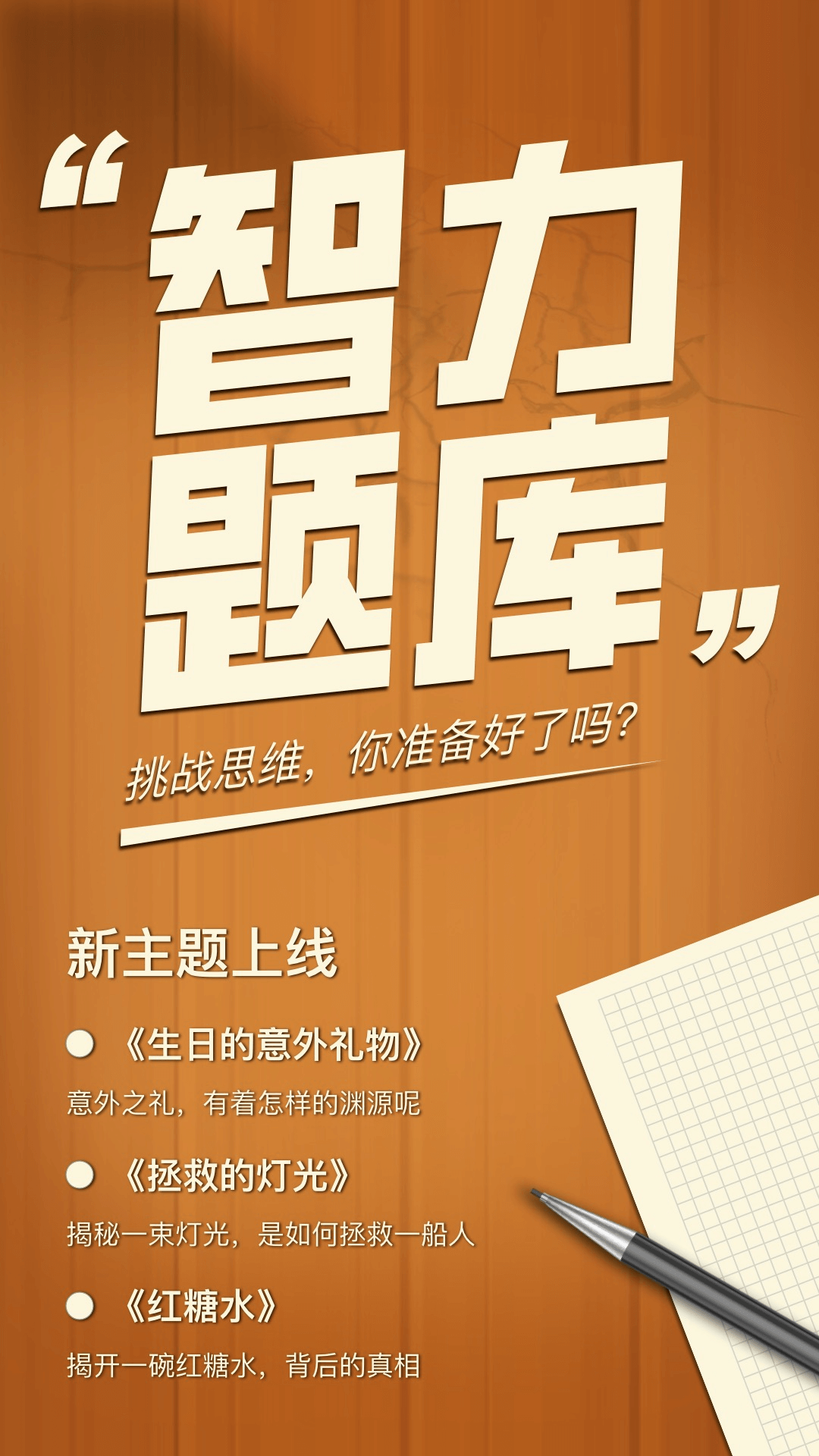 智力题库的最大亮点在于其丰富的题目类型,涵盖逻辑推理、数学、语言等多个领域,能够满足不同用户的需求。无论是想要锻炼逻辑思维还是提升语言能力,用户都能在这里找到合适的题目。