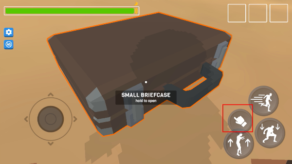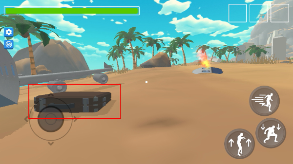 1、在沙漠场景中操控角色移动,靠近并选中【箱子】道具,准备进行互动操作。