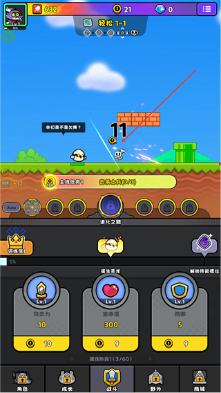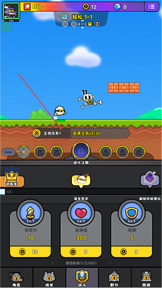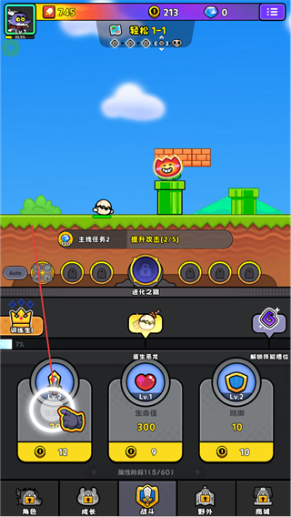 4、挑战新敌人,推进提升收益2/5任务,同时升级属性增强战力。