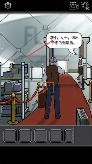 2、进入场景后,NPC提出“请出示您的邀请函”的要求,留意角色口袋区域,需从中找到对应的物品来回应。